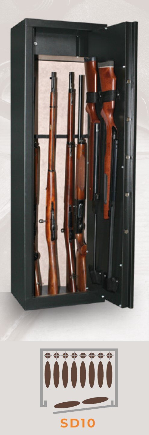 Corpo e porta in acciaio di prima qualità DD12 spessore 2 mm. • Porta a doppia parete spessore 55 mm con sistema anti-leva. • Bloccaggio con 5 cilindri in acciaio diametro 22 mm di grande profondità • Serratura ad alta sicurezza a 6 lame con chiave a doppia mappa (2 chiavi fornite). • Fori previsti per il fissaggio al pavimento e alla parete. • In dotazione 2 viti e tasselli per ancoraggio a terra o a parete di cemento armato. • Vernice epossidica ad alta resistenza, riscaldata a 220°. Colore nero. • Rastrelliera in legno (tranne nella S5: con appoggio in schiuma) • Rivestimenti interni beige (tranne nella S5: nessun rivestimento). • Scomparto interno con chiave (eccetto la S5: solo ripiano). SPEDIZIONE GRATUITA ENTRO max 4 giorni lavorativi Per le cassaforti accettiamo solo il pagamento anticipato con bonifico o paypal NO IN CONTRASSEGNO