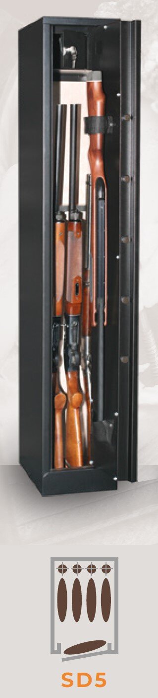 Corpo e porta in acciaio di prima qualità DD12 spessore 2 mm. • Porta a doppia parete spessore 55 mm con sistema anti-leva. • Bloccaggio con 5 cilindri in acciaio diametro 22 mm di grande profondità • Serratura ad alta sicurezza a 6 lame con chiave a doppia mappa (2 chiavi fornite). • Fori previsti per il fissaggio al pavimento e alla parete. • In dotazione 2 viti e tasselli per ancoraggio a terra o a parete di cemento armato. • Vernice epossidica ad alta resistenza, riscaldata a 220°. Colore nero. • Rastrelliera in legno (tranne nella S5: con appoggio in schiuma) • Rivestimenti interni beige (tranne nella S5: nessun rivestimento). • Scomparto interno con chiave (eccetto la S5: solo ripiano). SPEDIZIONE GRATUITA ENTRO max 4 giorni lavorativi Per le cassaforti accettiamo solo il pagamento anticipato con bonifico o paypal NO IN CONTRASSEGNO