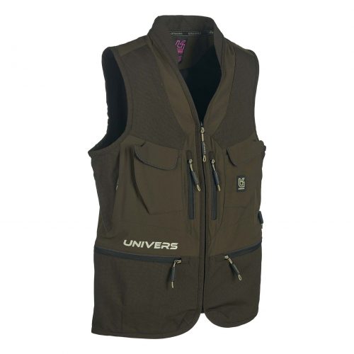 Gilet da caccia ALPI in nylon elasticizzato nelle quattro direzioni, leggero e confortevole per agevolare il movimento. Rinforzi in tessuto DR-TEX nei punti di maggiore usura. Sei tasche frontali con chiusura a zip, due tasche porta radio, ampio carniere, tasca interna porta documenti. SPEDIZIONE GRATUITA
