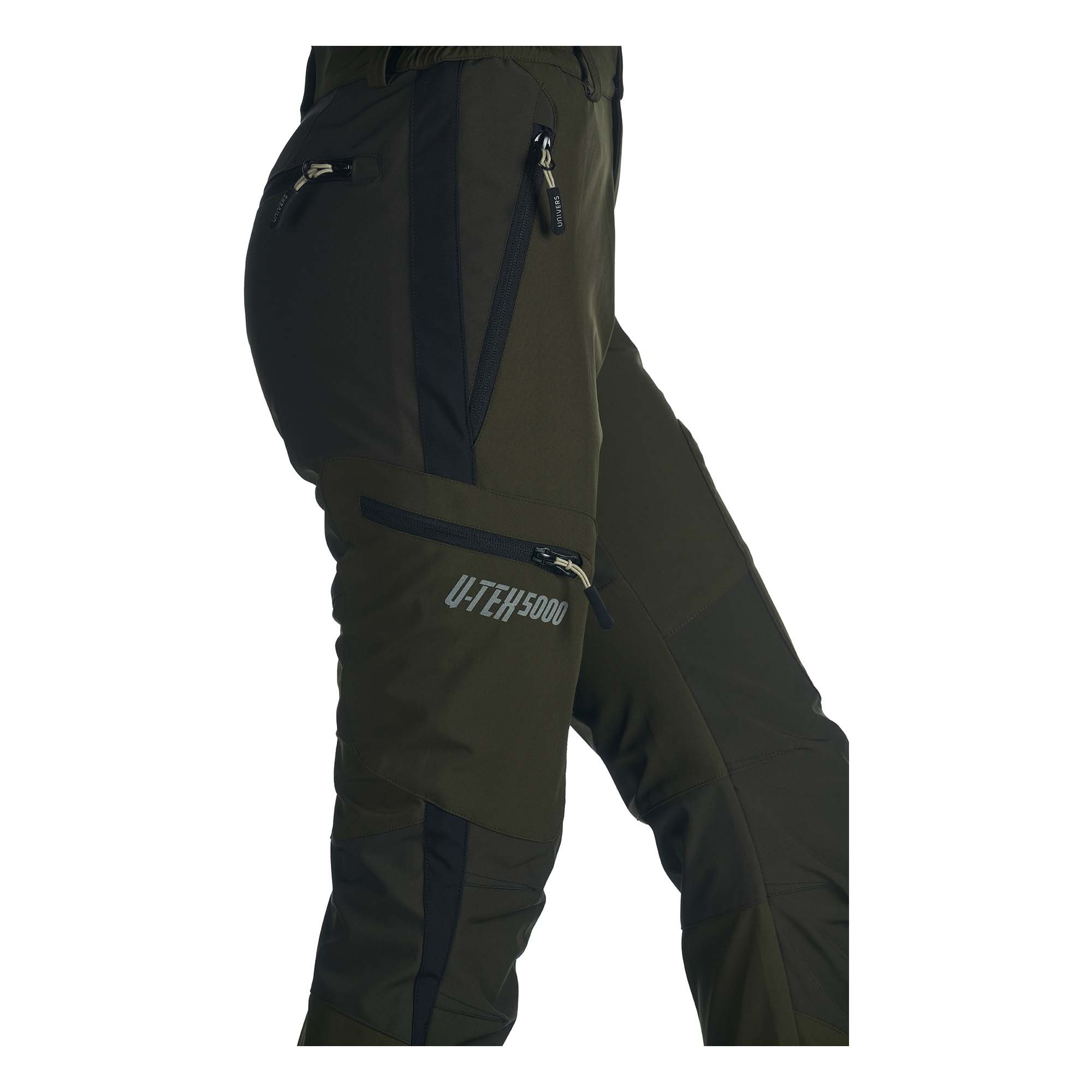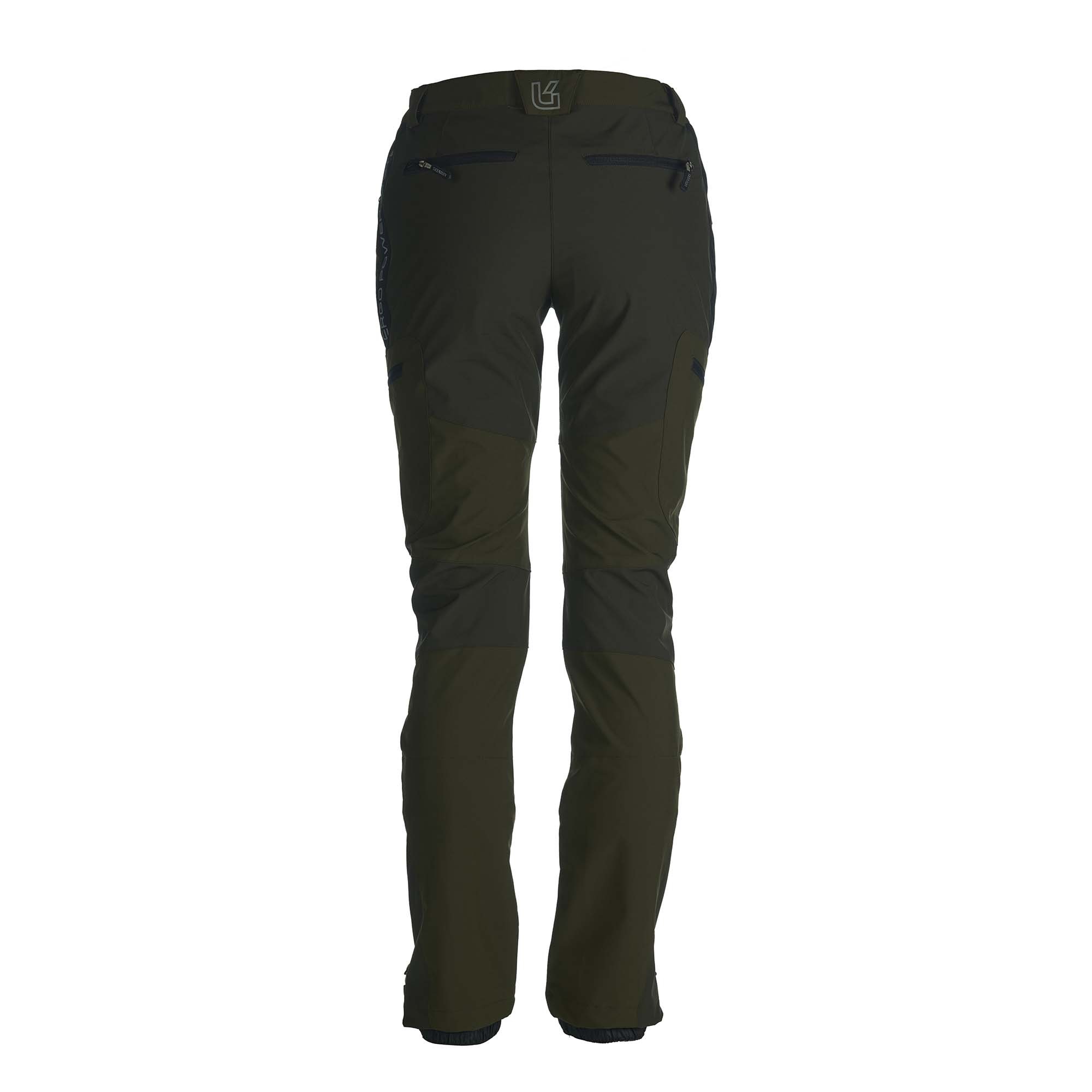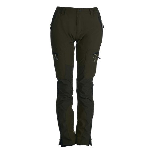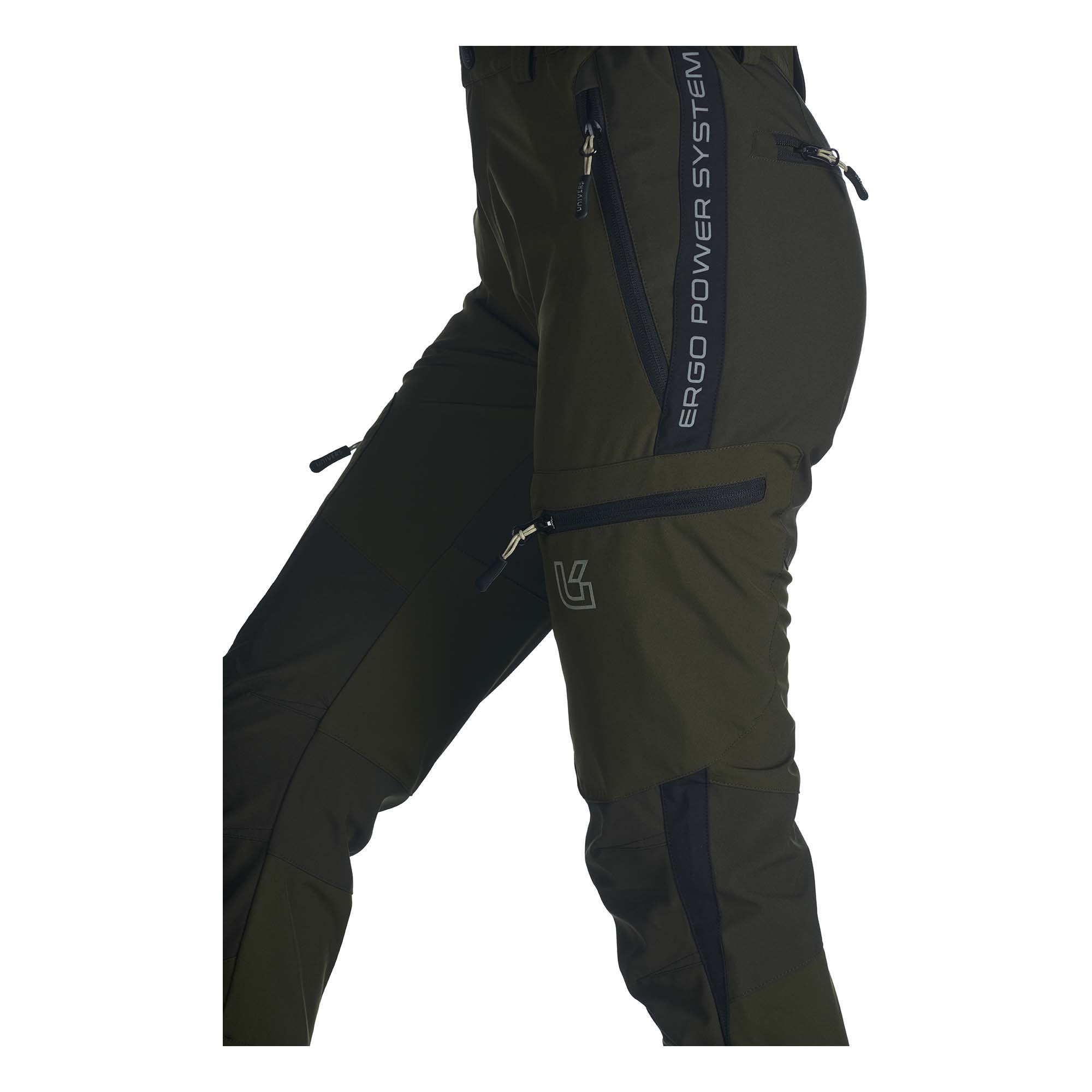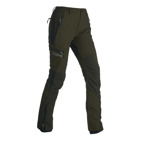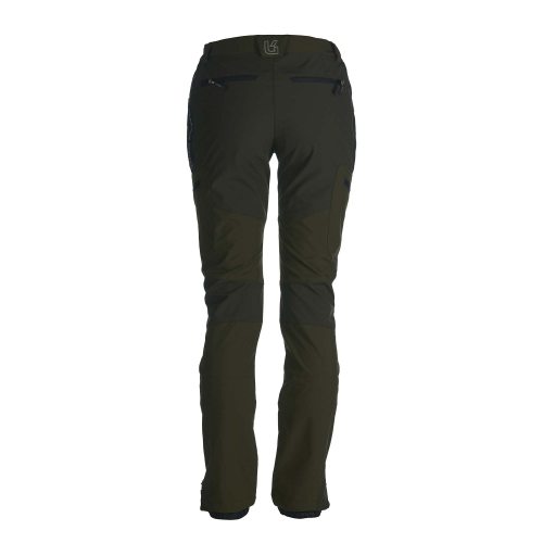 Pantalone ERGO U-TEX in leggero softshell elasticizzato con membrana U-TEX impermeabile e traspirante, dotato di quattro tasche frontali con chiusura a zip, due tasche posteriori con chiusura a zip, zip a fondo gamba. È presente una funzionale ghetta in nylon staccabile con banda in silicone per una migliore aderenza allo scarpone.