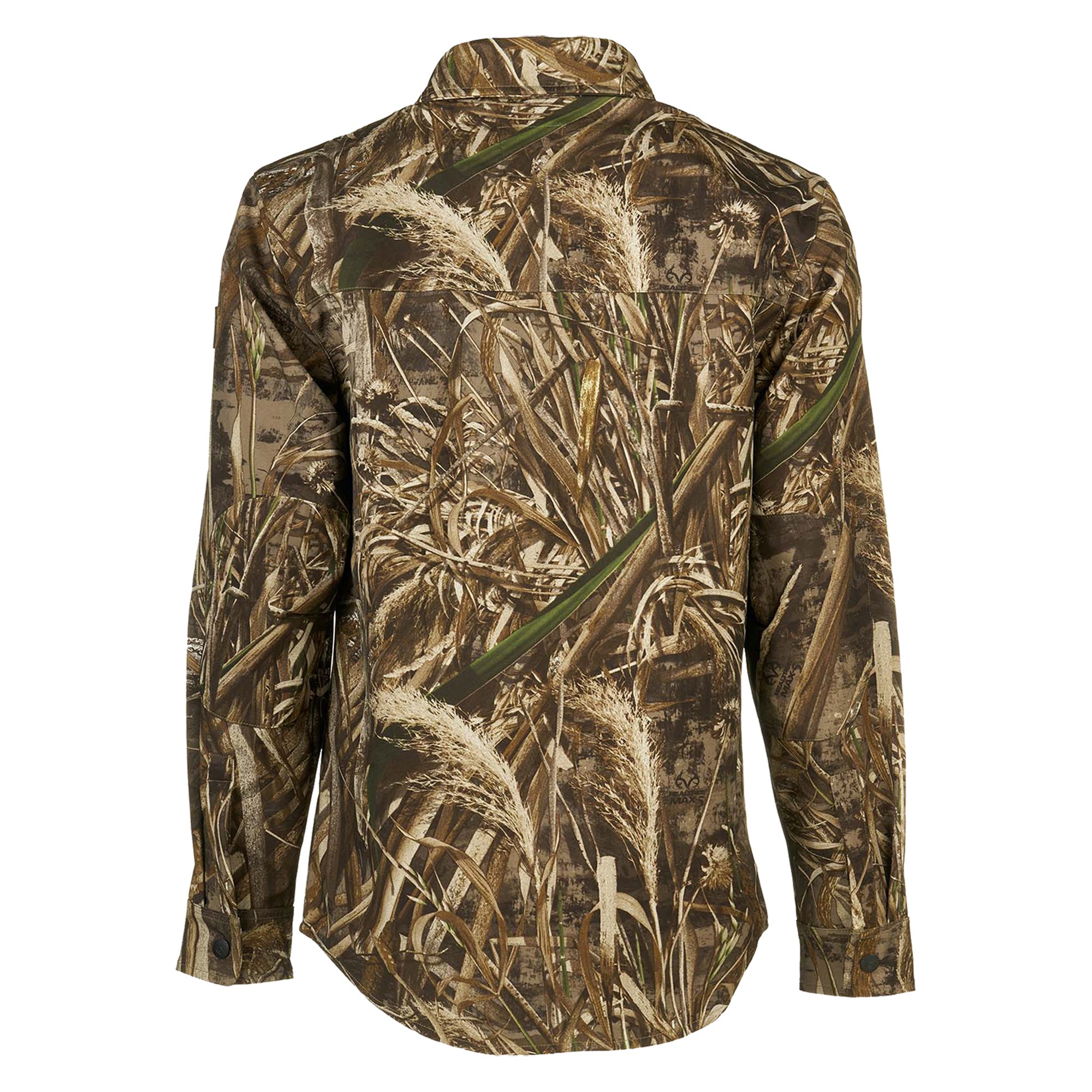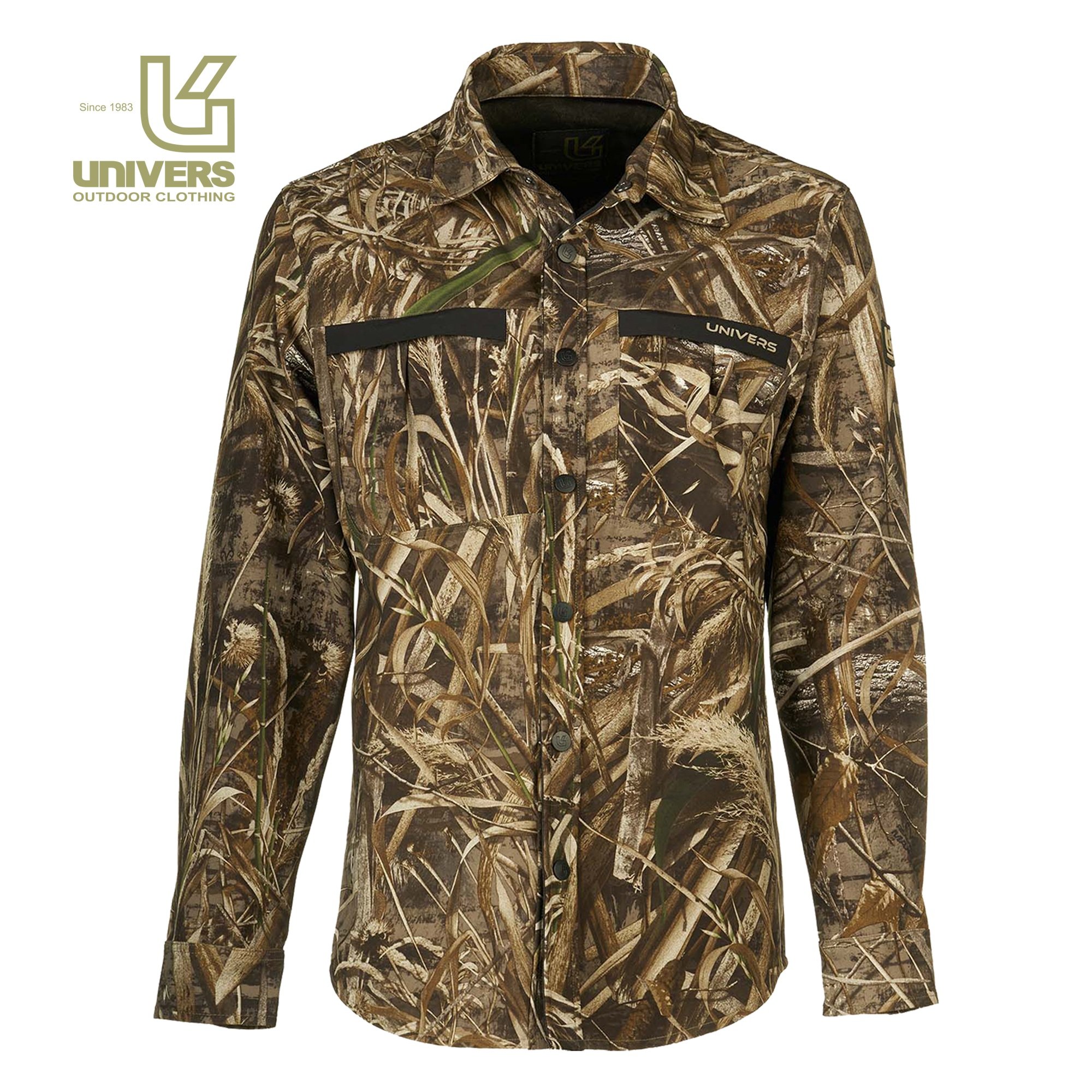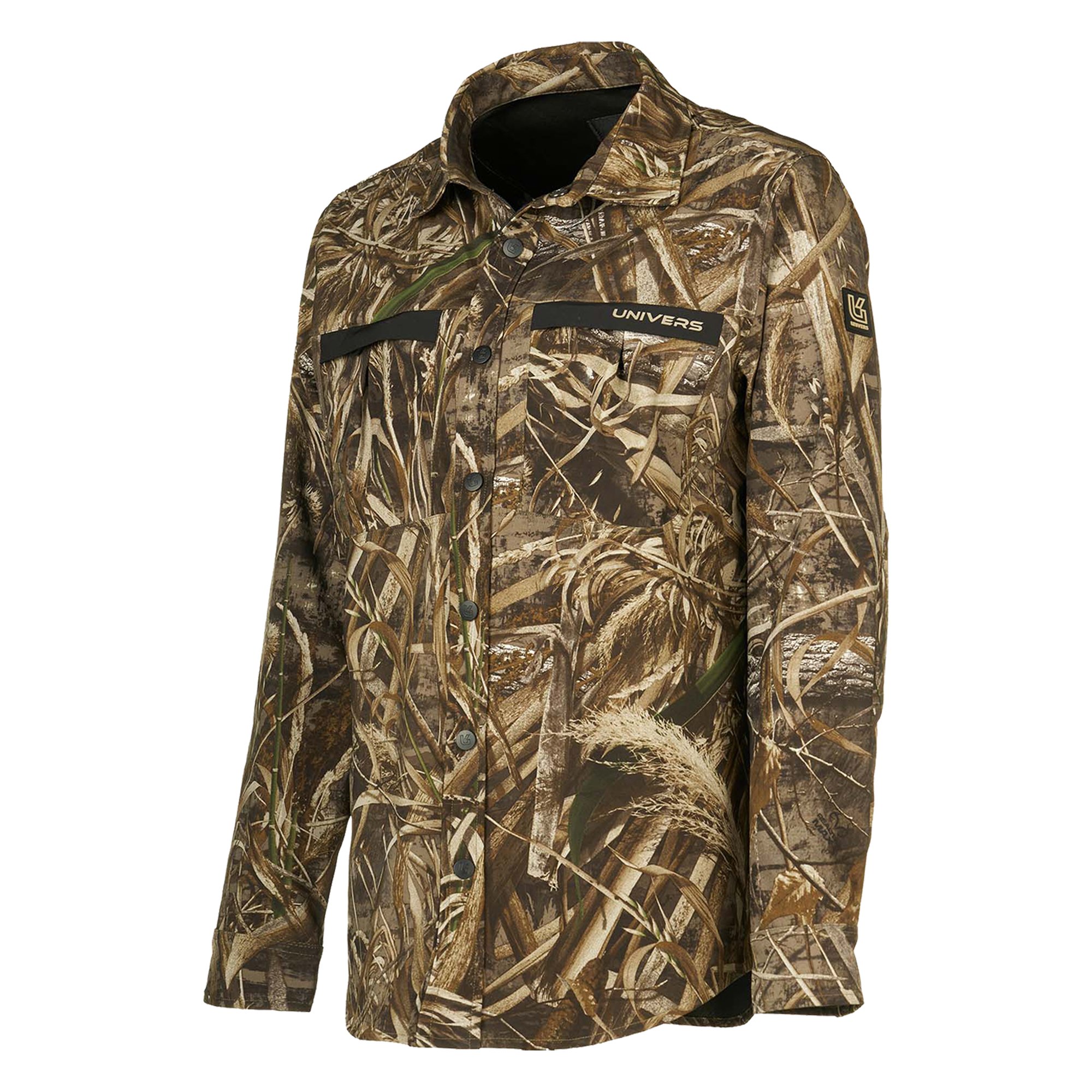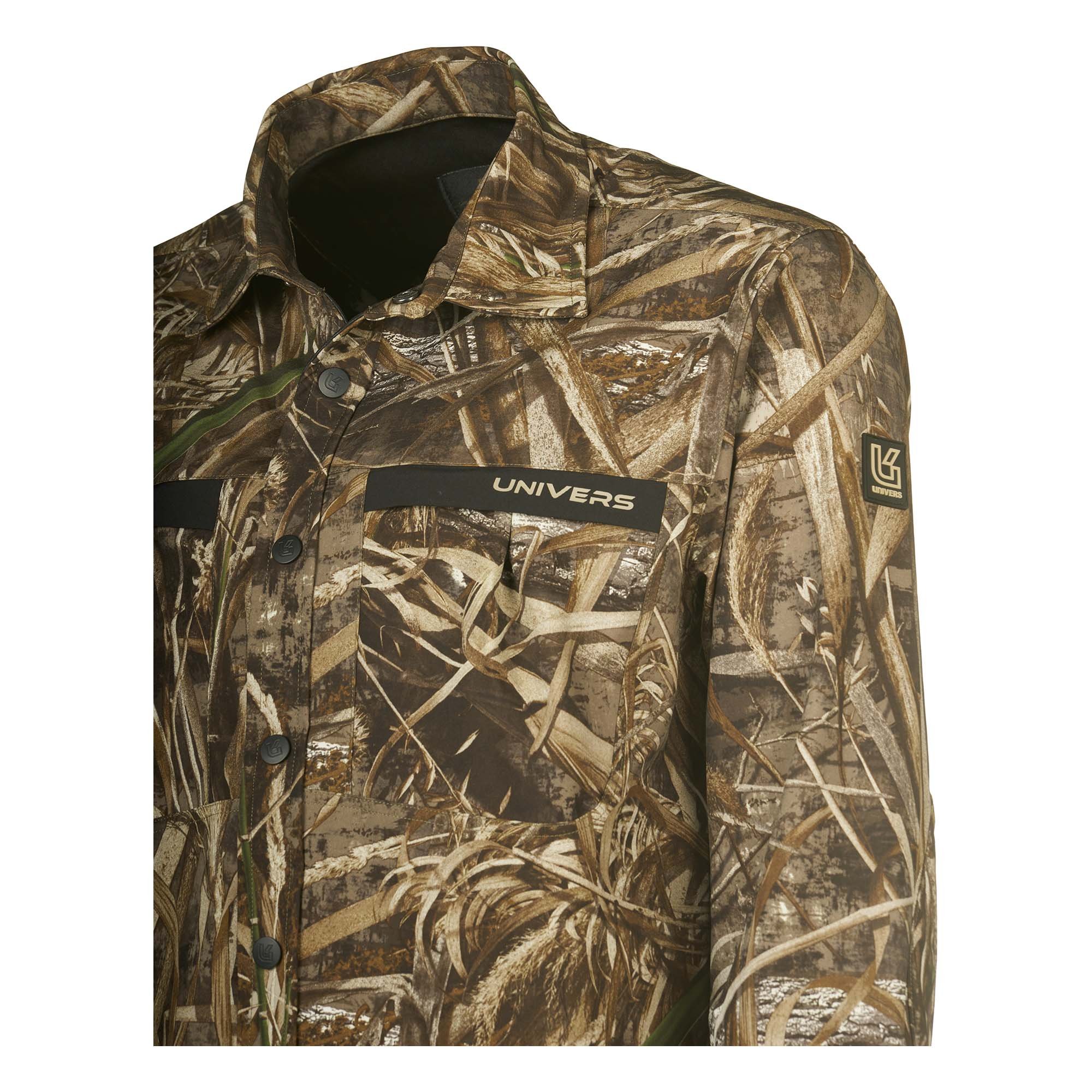 Camicia da caccia realizzata in leggero softshell elasticizzato nelle quattro direzioni doppiato con membrana U-Tex, impermeabile e traspirante. Viene proposta nella colorazione mimetico originale Realtree Max-5®. Due tasche al petto con zip e pattina. Chiusura tramite bottoni a pressione.