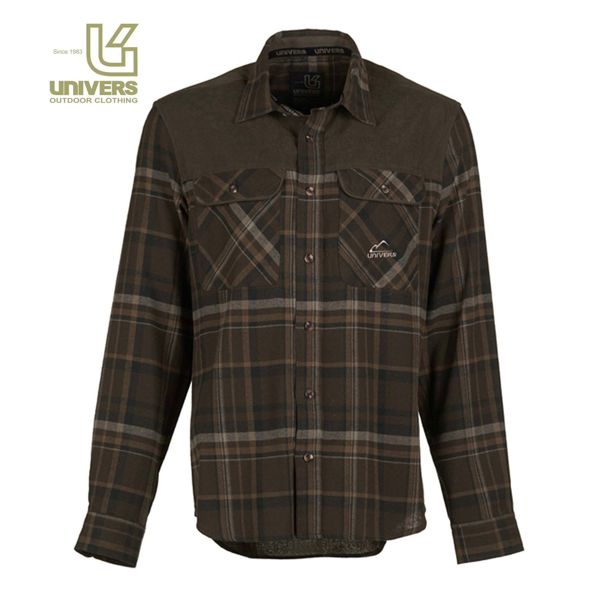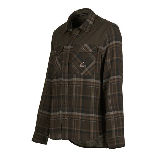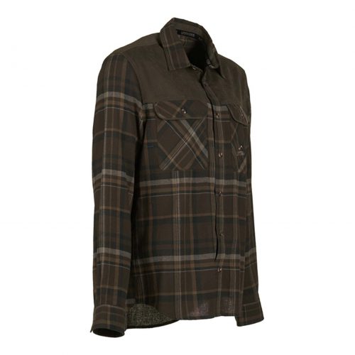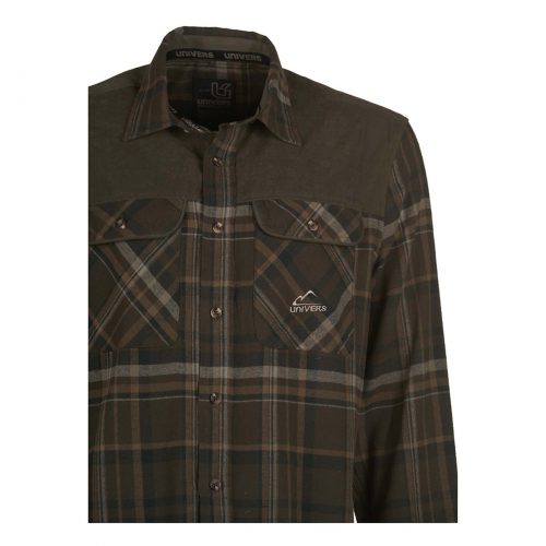 Elegante camicia realizzata in calda e morbida flanella di cotone con spallacci e rifiniture in tessuto a contrasto, adatta all’uso quotidiano e per il tempo libero.