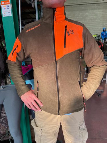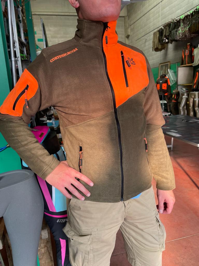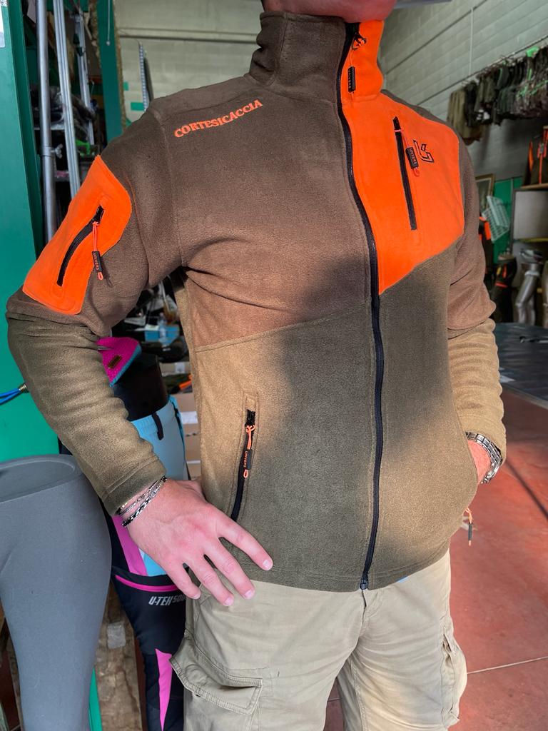 Pratica felpa CortesiCaccia in caldo pile da 300 grammi con quattro tasche frontali con zip.