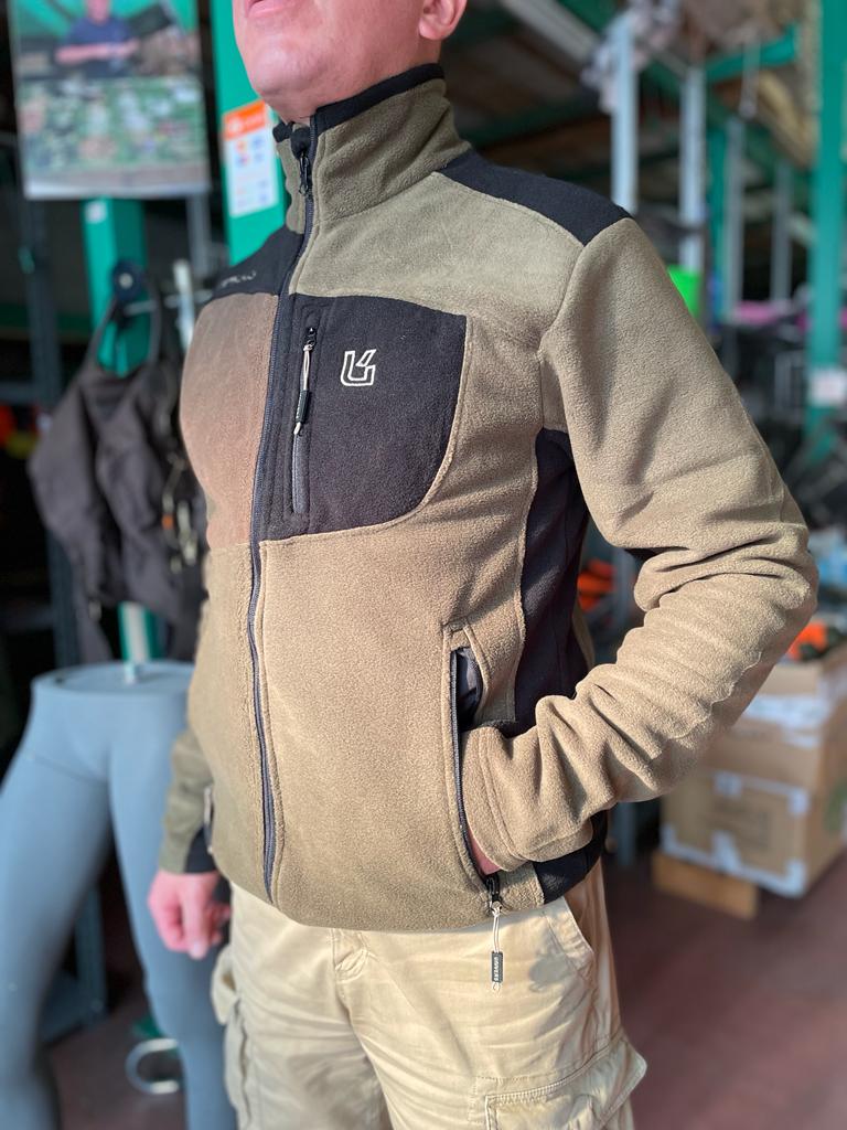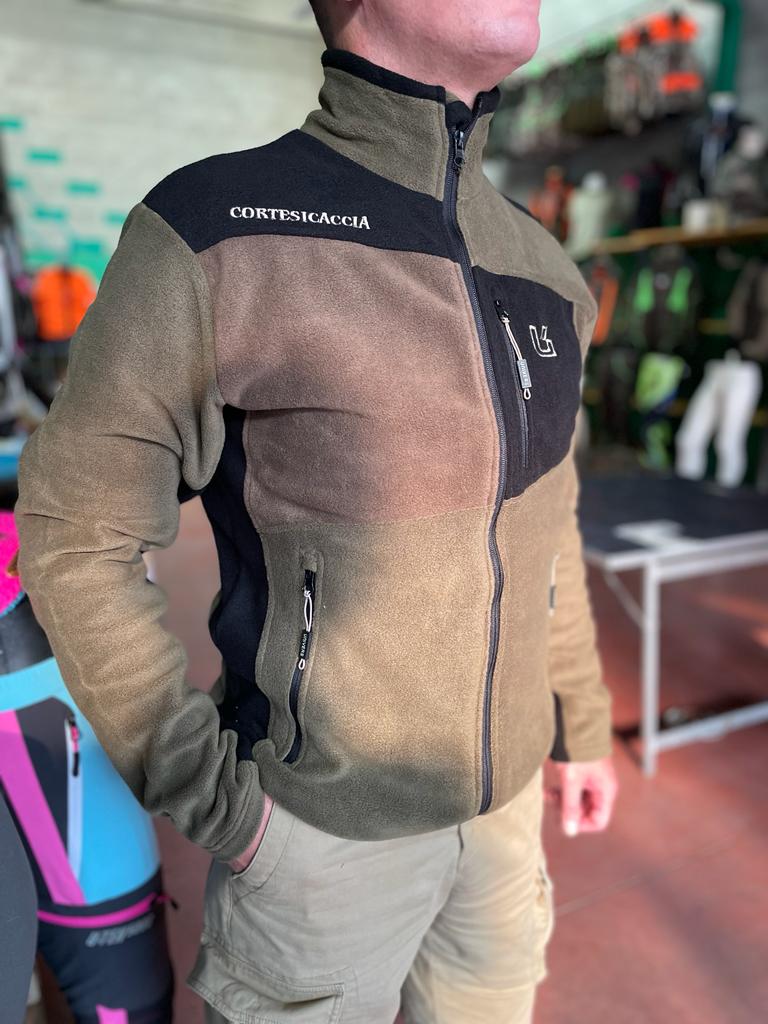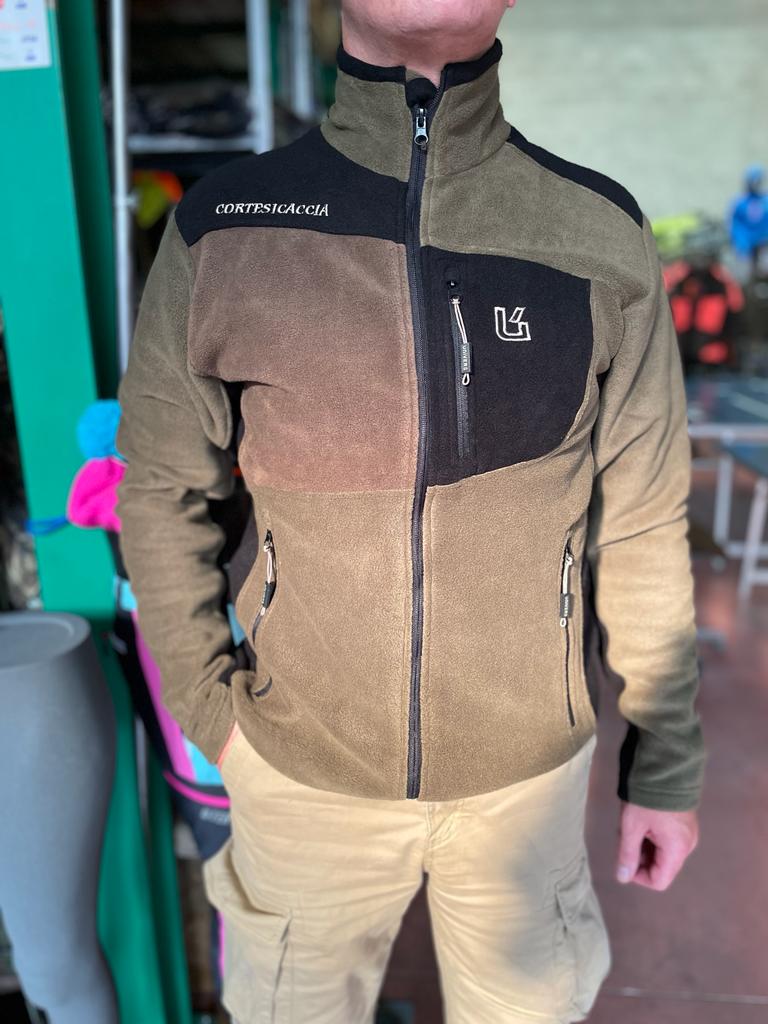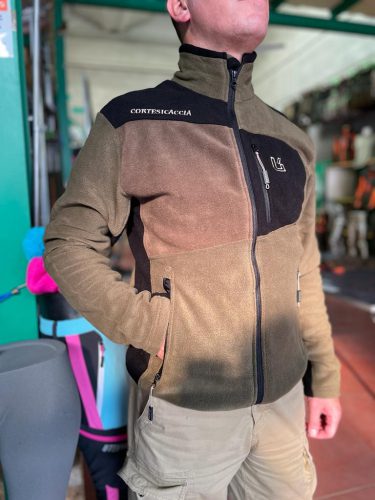 Pratica felpa CortesiCaccia in caldo pile da 300 grammi con quattro tasche frontali con zip.