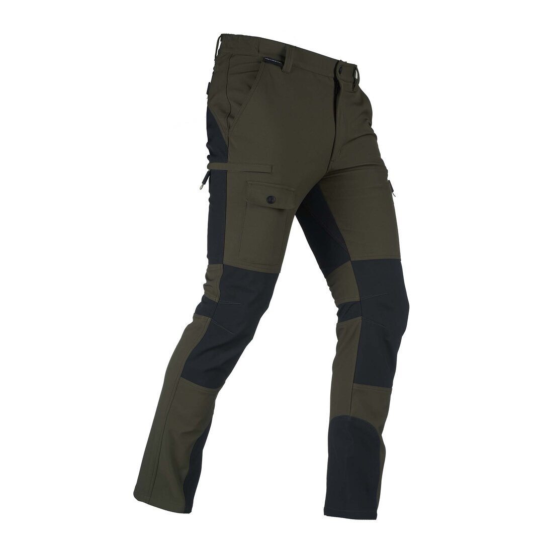 Pantalone da caccia Legend particolarmente pratico e comodo da indossare grazie al tessuto elasticizzato nelle quattro direzioni. La membrana U-tex applicata al tessuto assicura la traspirabilità e protezione contro la pioggia, vento. Due tasche frontali, due tasconi laterali con zip e ulteriore piccola tasca applicata, due tasche posteriori con zip elastico ai fianchi. SPEDIZIONE GRATUITA