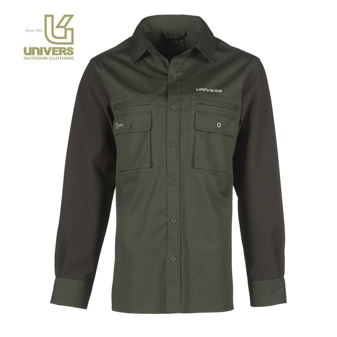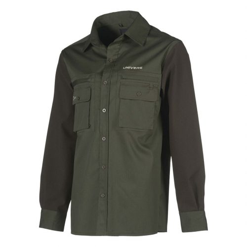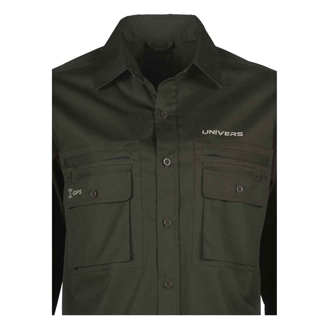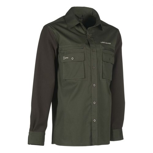 Camicia tecnica da caccia Rovo realizzata in twill di cotone e maniche rinforzate con tessuto DR-TEX. Due tasche al petto con zip su cui è applicata tasca porta satellitare con pattina provvista di foro per l’antenna SPEDIZIONE GRATUITA