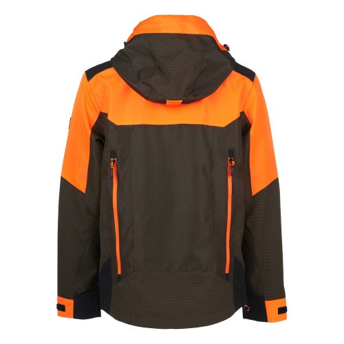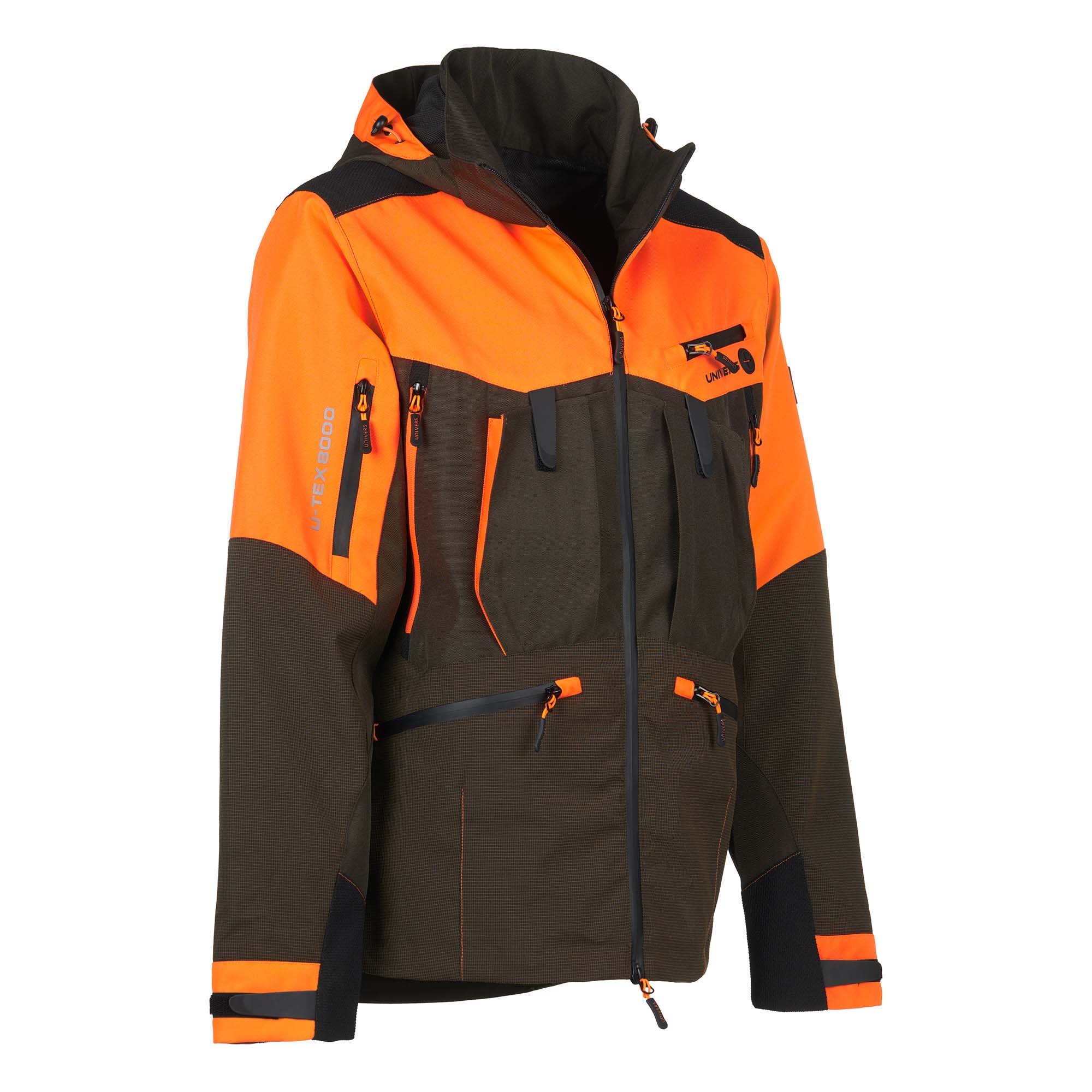 Giacca da caccia STAMBECCO impermeabile e traspirante, realizzata in resistente tessuto tecnico oxford laminato con nostra membrana U-Tex e applicazioni in tessuto CK-TEX. Quattro tasche frontali con zip, tre tasche porta satellitare, una tasca sulla manica destra con zip impermeabilizzata. Ampio tascone posteriore con zip, tasca interna porta documenti, cappuccio staccabile.
