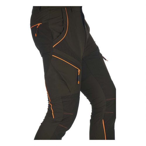 Pantalone da caccia ALPI realizzato in leggero tessuto elasticizzato nelle quattro direzioni con rinforzi in tessuto DR-TEX su tutta la gamba e parte posteriore. Due comode tasche frontali , due tasconi laterali a soffietto con zip, due tasche posteriori con zip, elastico ai fianchi zip a fondo gamba e gancio per fissaggio allo scarpone SPEDIZIONE GRATUITA