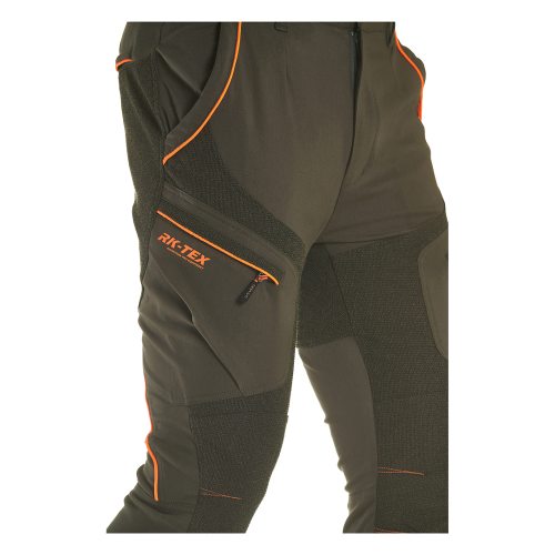 Pantalone da caccia ALPI dalla forma ergonomica in tessuto elasticizzato idrorepellente dotato di rinforzo in tessuto RK-TEX a contrasto nelle parti a maggiore usura, tasconi laterali, tasche posteriori, elastico ai fianchi. SPEDIZIONE GRATUITA