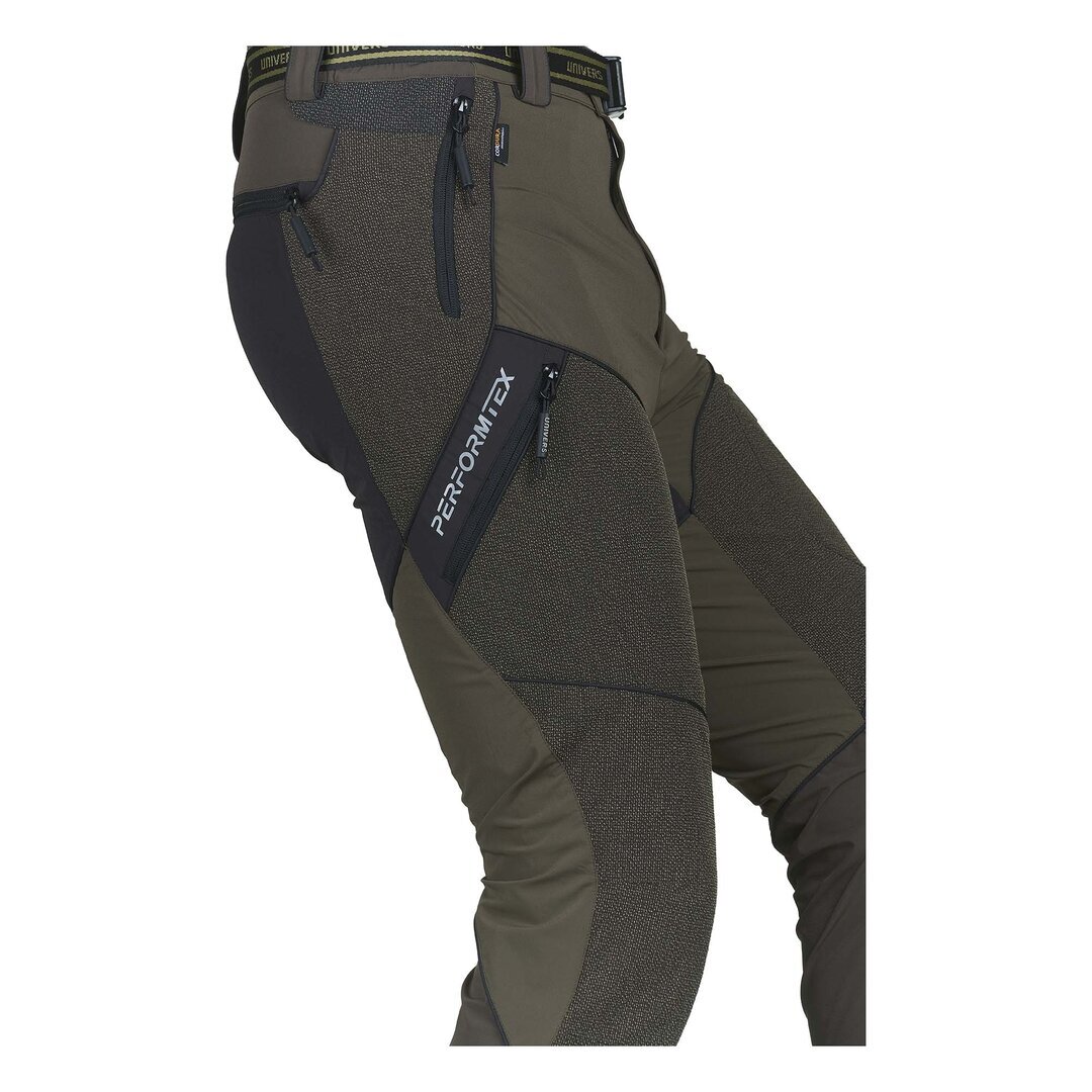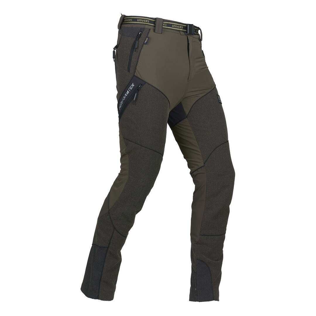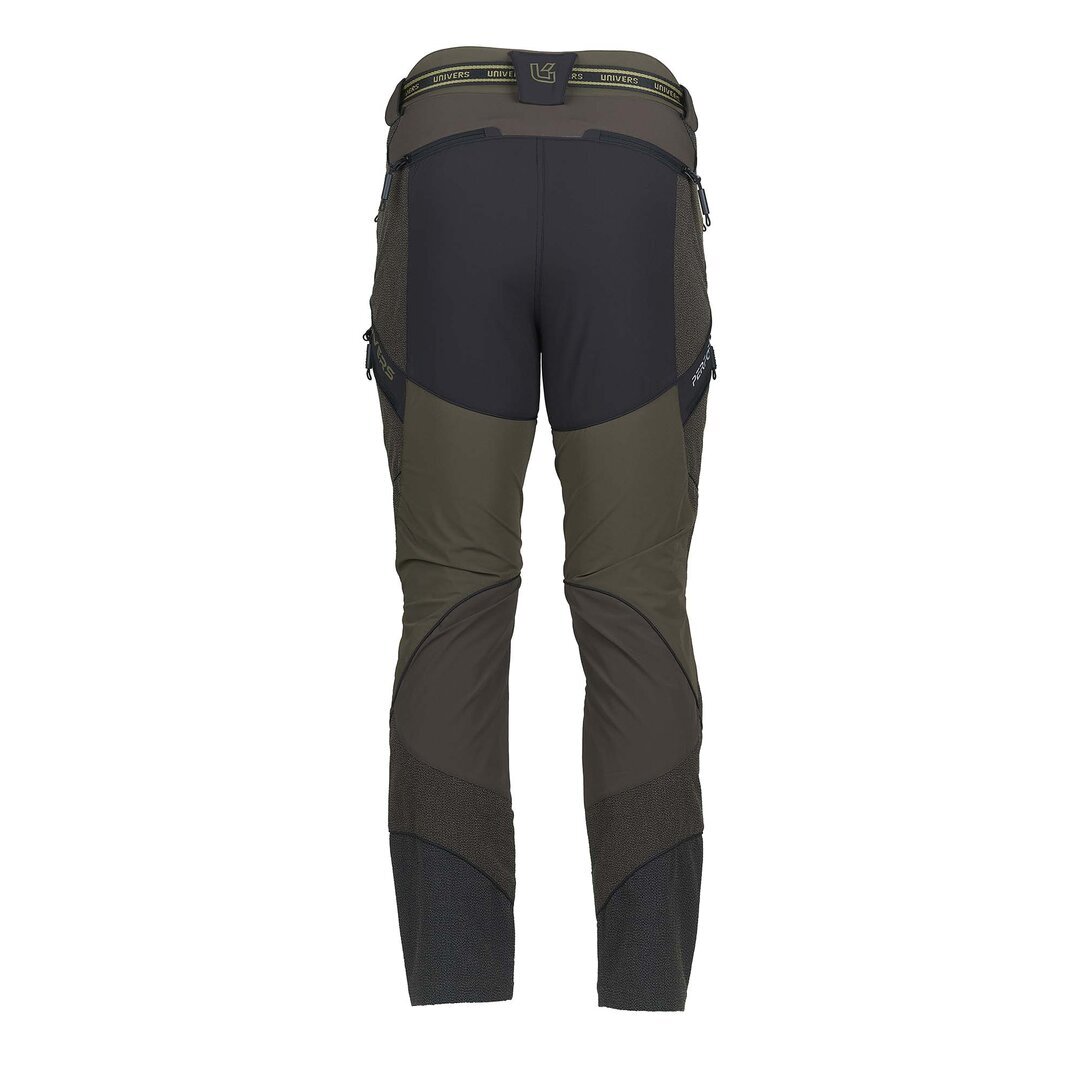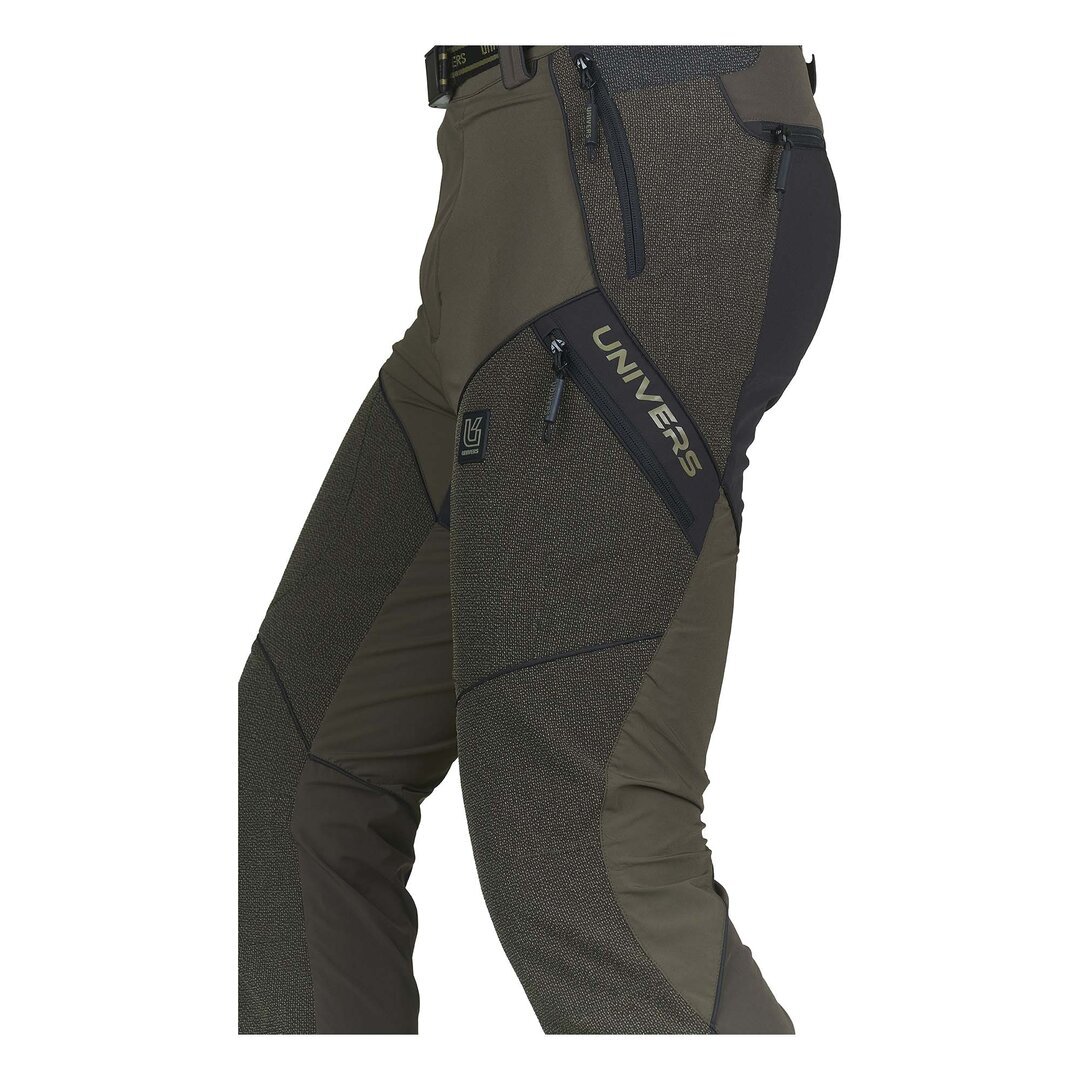 Pantalone da caccia leggero e resistente, adatto ai percorsi boschivi, grazie al rinforzo sulla gamba in Cordura® antistrappo. Il tessuto di nylon elasticizzato nelle quattro direzioni permette la massima comodità nei movimenti. Due tasche frontali , due ampie tasche laterali a scomparsa, due tasche posteriori tutte con zip, elastico ai fianchi. Completano il capo cintura removibile e gancio per fissaggio allo scarpone. SPEDIZIONE GRATUITA