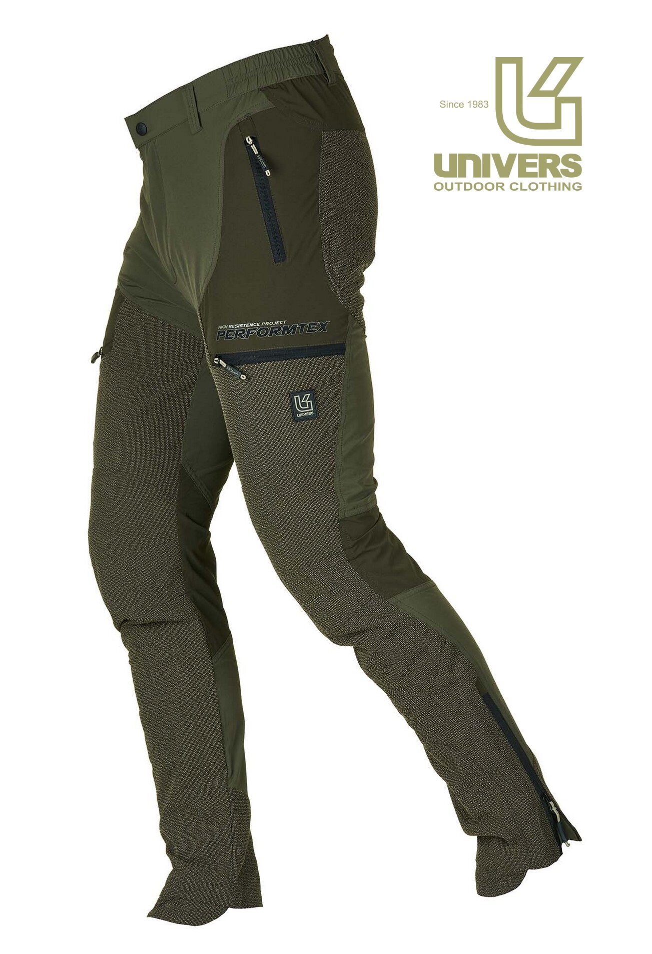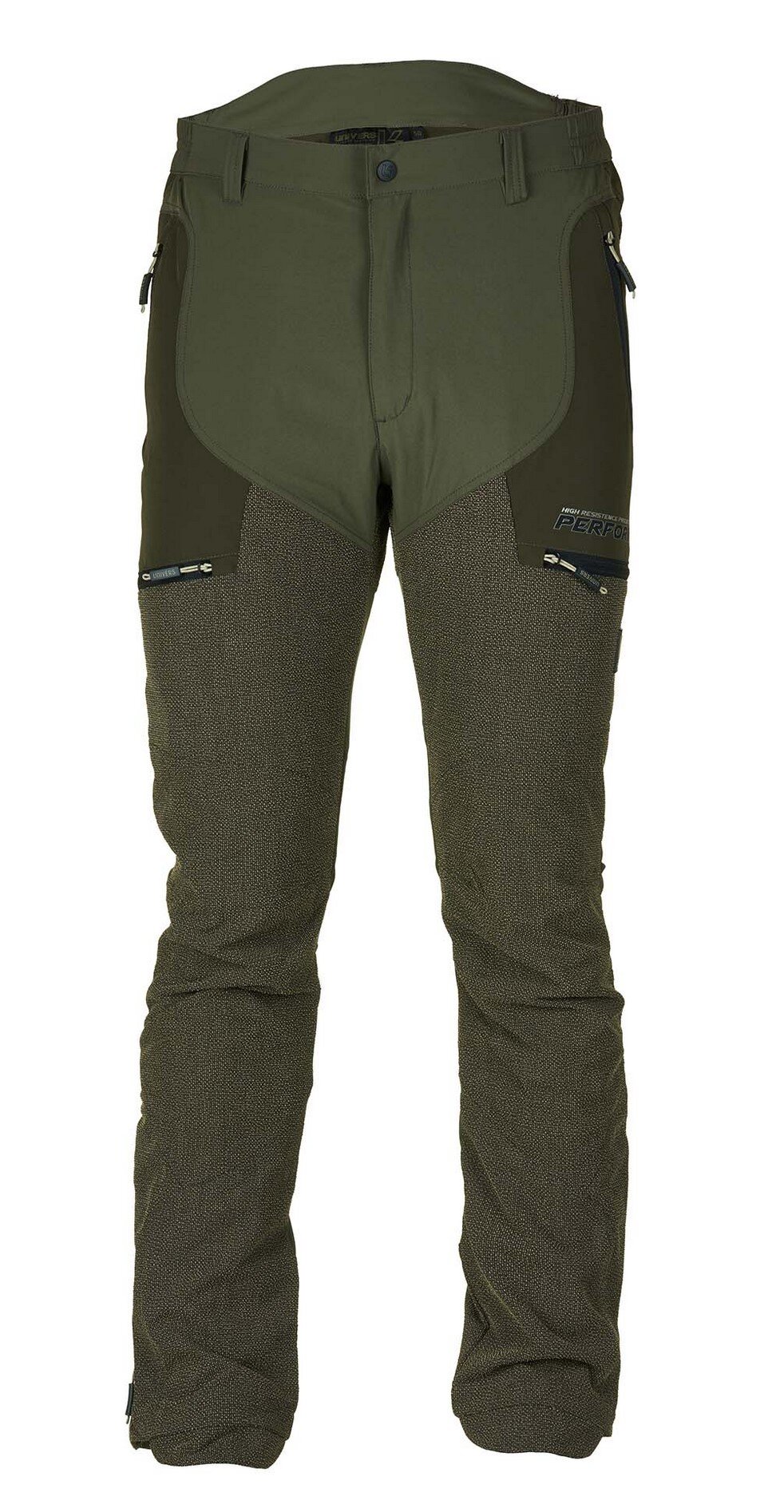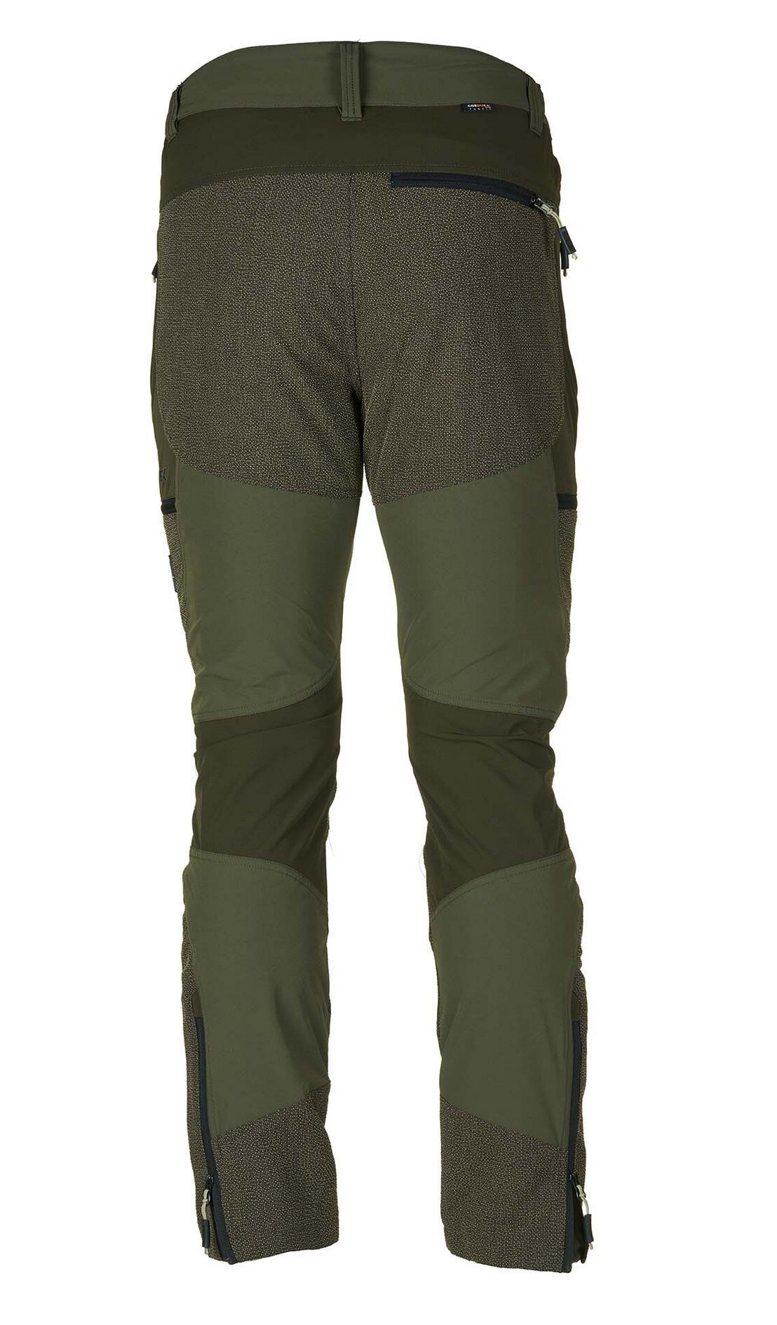 Pantalone da caccia in resistente nylon elasticizzato nelle quattro direzioni con protezione antistrappo in Cordura® sulla gamba. Quattro tasche frontali con chiusura a zip, una tasca posteriore con chiusura a zip, elastico ai fianchi, zip a fondo gamba. SPEDIZIONE GRATUITA