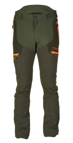 Pantalone da caccia in resistente tessuto elasticizzato nelle quattro direzioni con protezione antistrappo in Cordura® sulla gamba. Quattro tasche frontali con chiusura a zip, una tasca posteriore con chiusura a zip, elastico ai fianchi, zip a fondo gamba. SPEDIZIONE GRATUITA