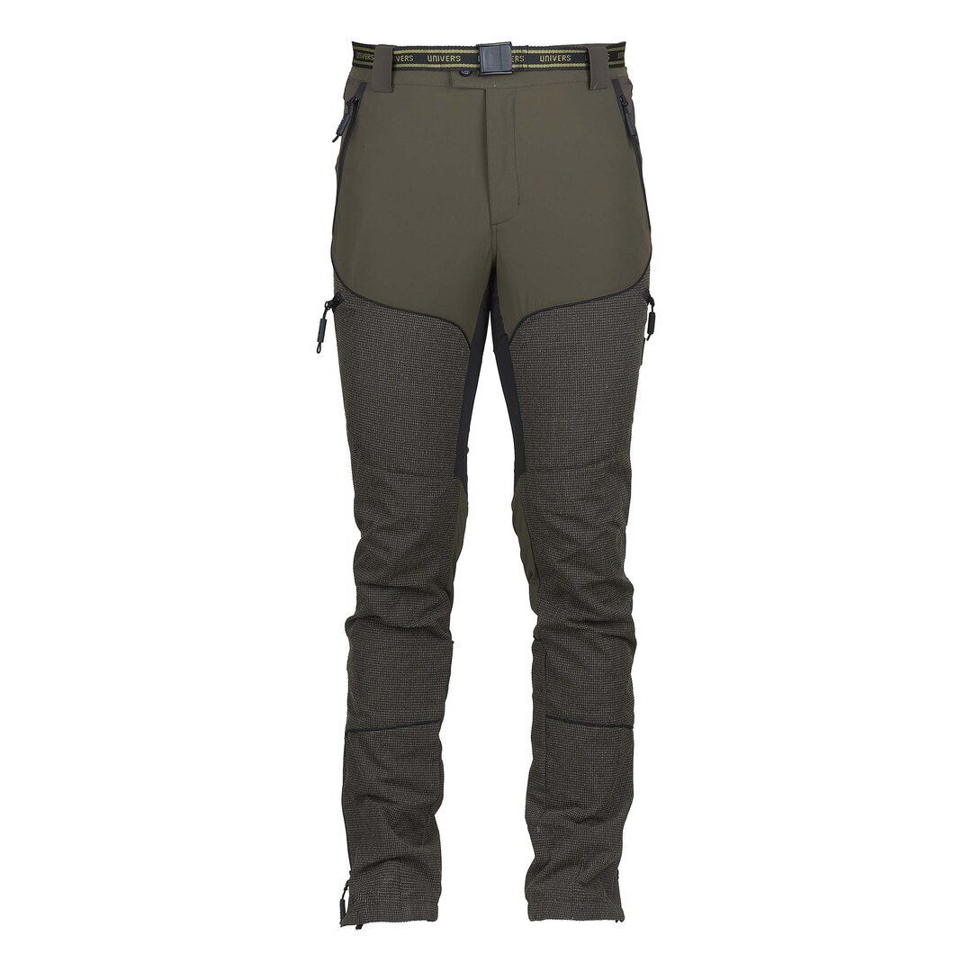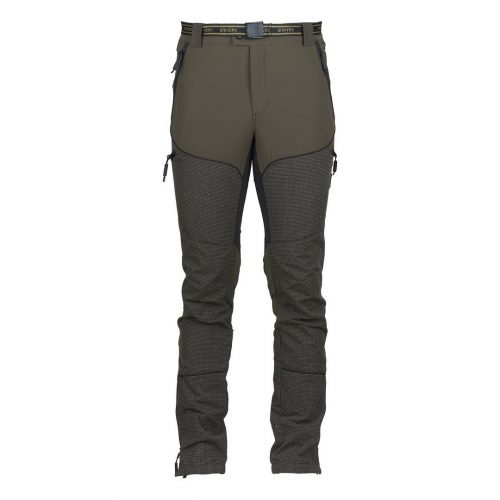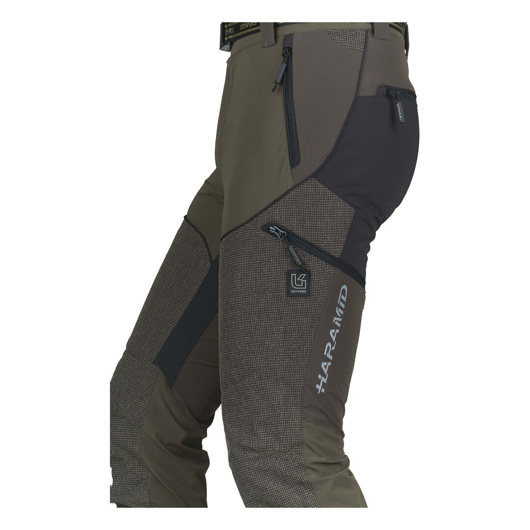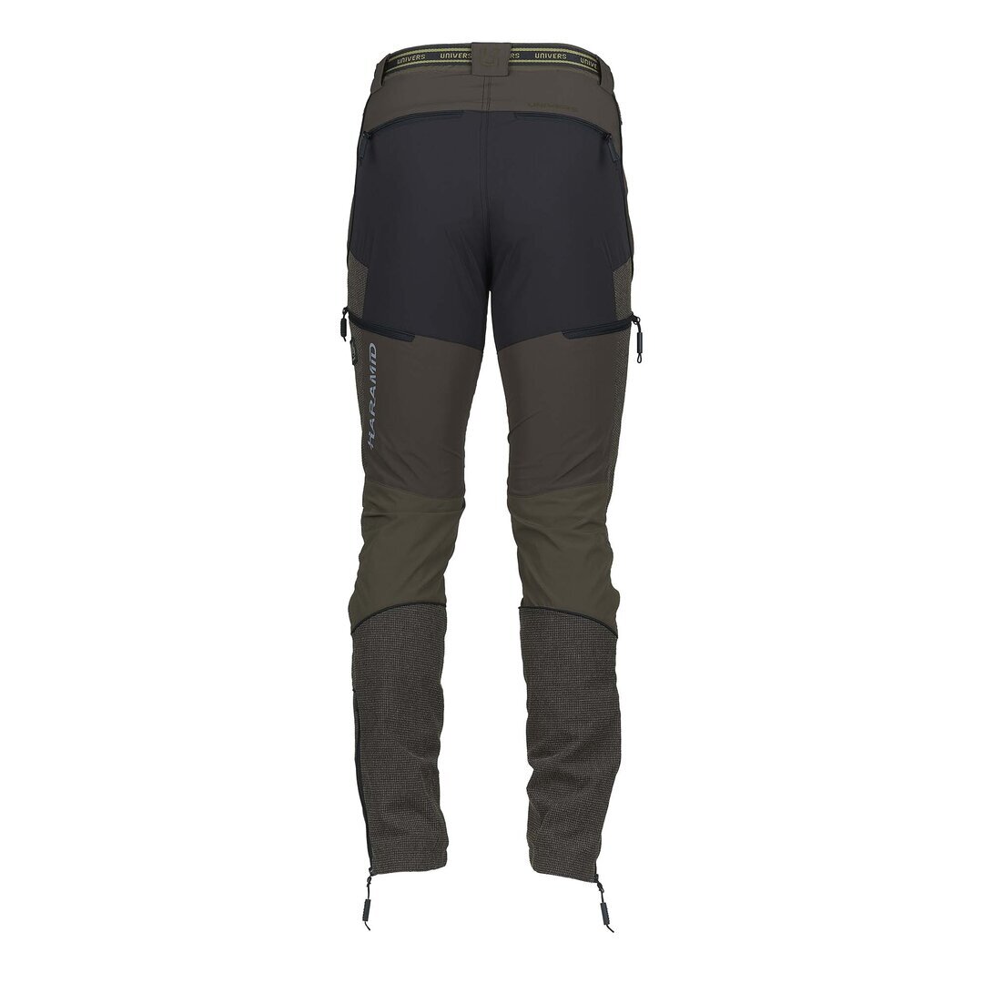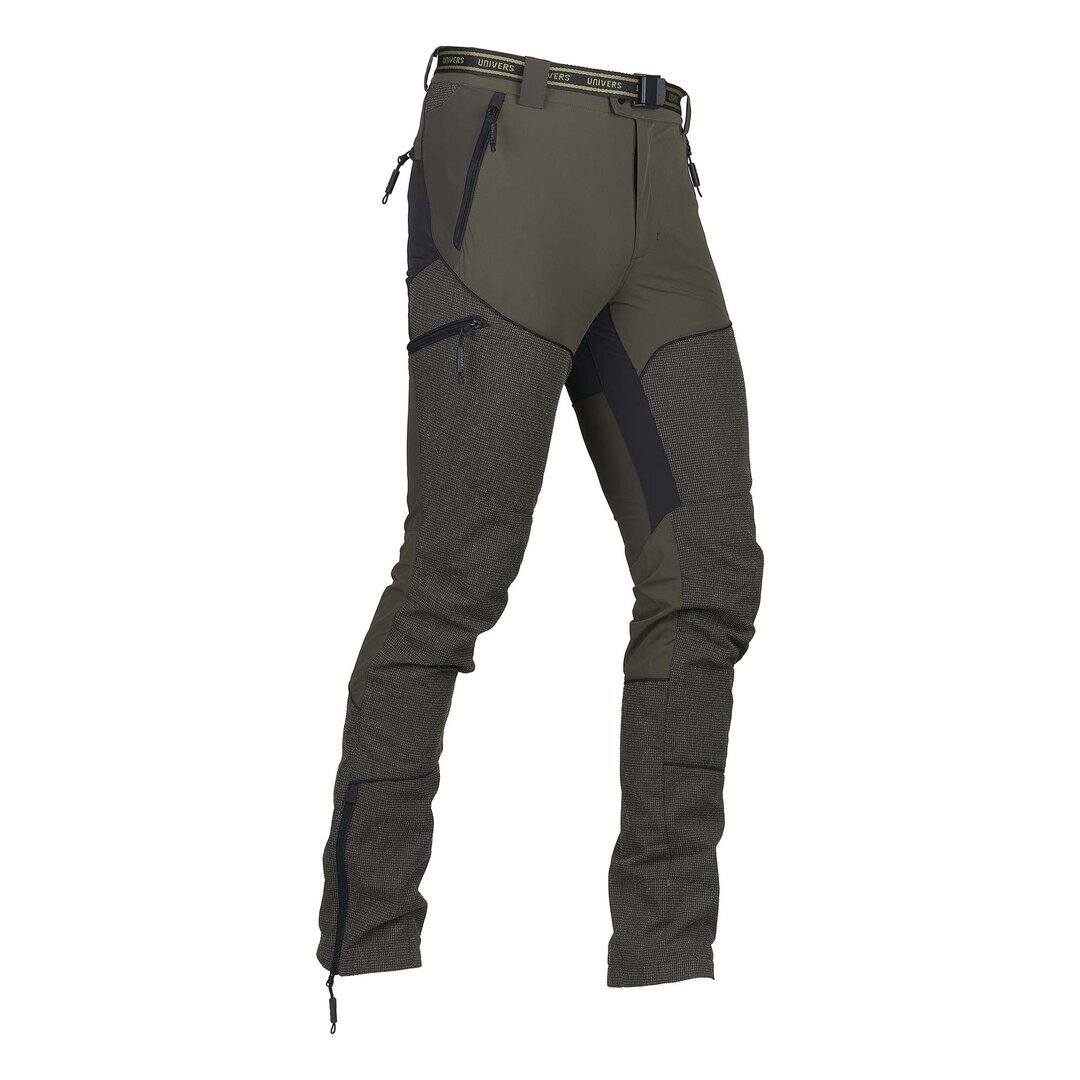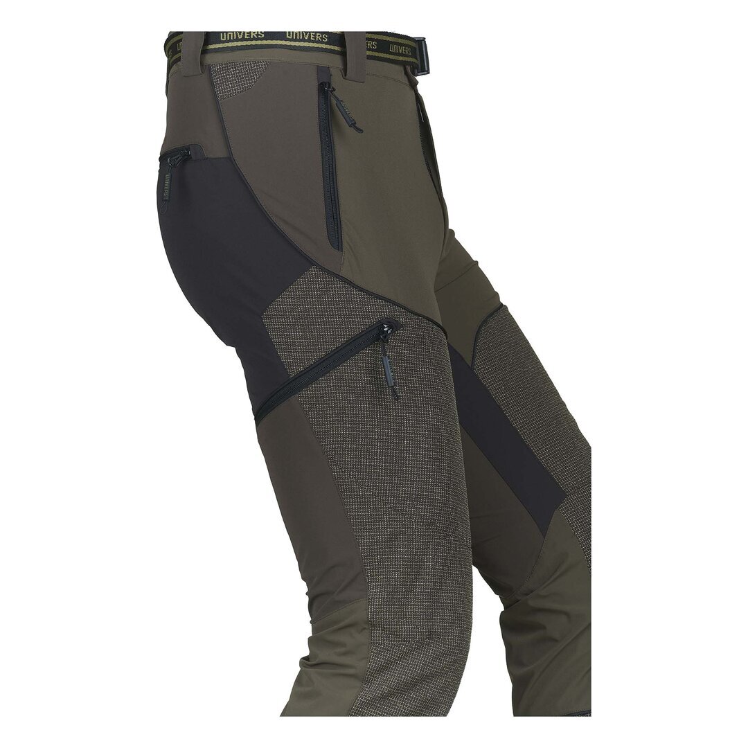 Pantalone da caccia leggero e resistente, adatto ai percorsi boschivi, grazie al rinforzo sulla gamba in Kevlar® antistrappo e anti abrasione. Il tessuto di nylon elasticizzato nelle quattro direzioni permette la massima comodità nei movimenti. Due tasche frontali, due ampie tasche laterali a scomparsa, due tasche posteriori tutte con zip, elastico in vita, zip a fondo gamba. Completano il capo cintura removibile, orlo interno con banda in silicone e gancio per fissaggio allo scarpone. SPEDIZIONE GRATUITA