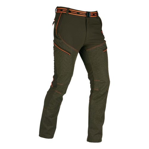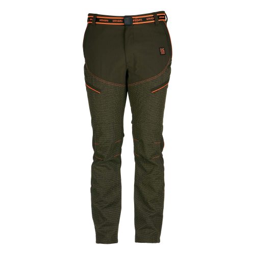 Pantalone da caccia KEVLAR® RESISTANT, ideato per l’utilizzo in ambienti impervi. Il tessuto nylon elasticizzato facilita i movimenti, mentre i rinforzi in Kevlar® assicurano una protezione agli strappi e abrasioni. Due tasche frontali con zip e pattina, due tasche laterali a scomparsa con zip, due tasche posteriori con zip, elastico in vita e cintura removibile.