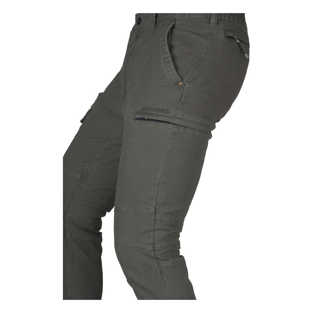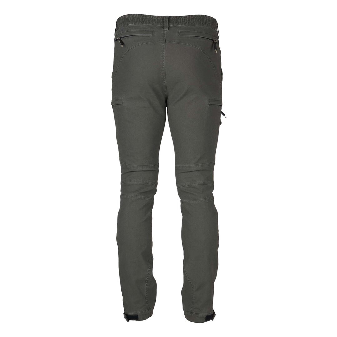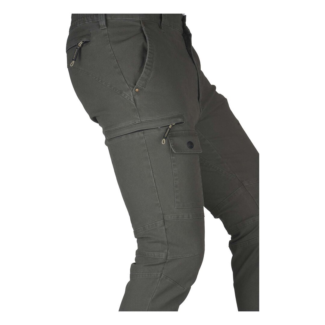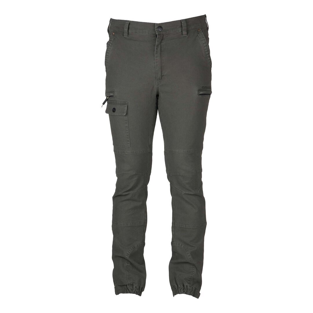 Pantalone da caccia LEGEND, in robusto canvas di cotone elasticizzato slavato. Due tasche frontali, due tasche laterali a scomparsa con zip e una tasca porta cellulare, due tasche posteriori con zip, elastico in vita, fondo gamba con elastico e possibilità di restringimento con velcro . SPEDIZIONE GRATUITA