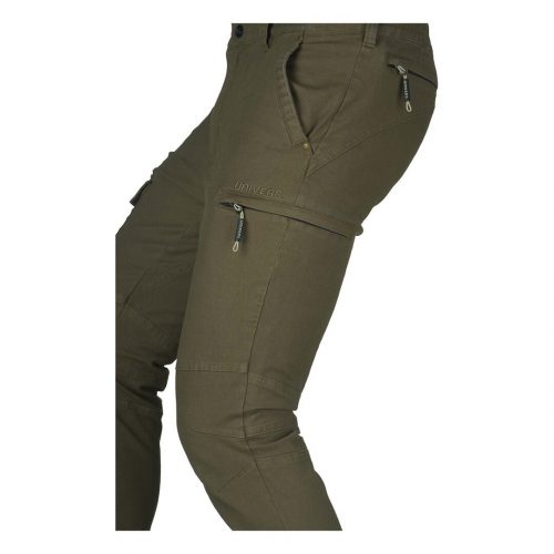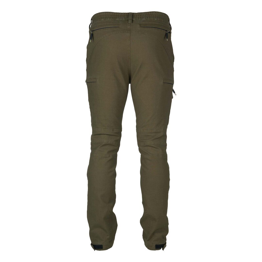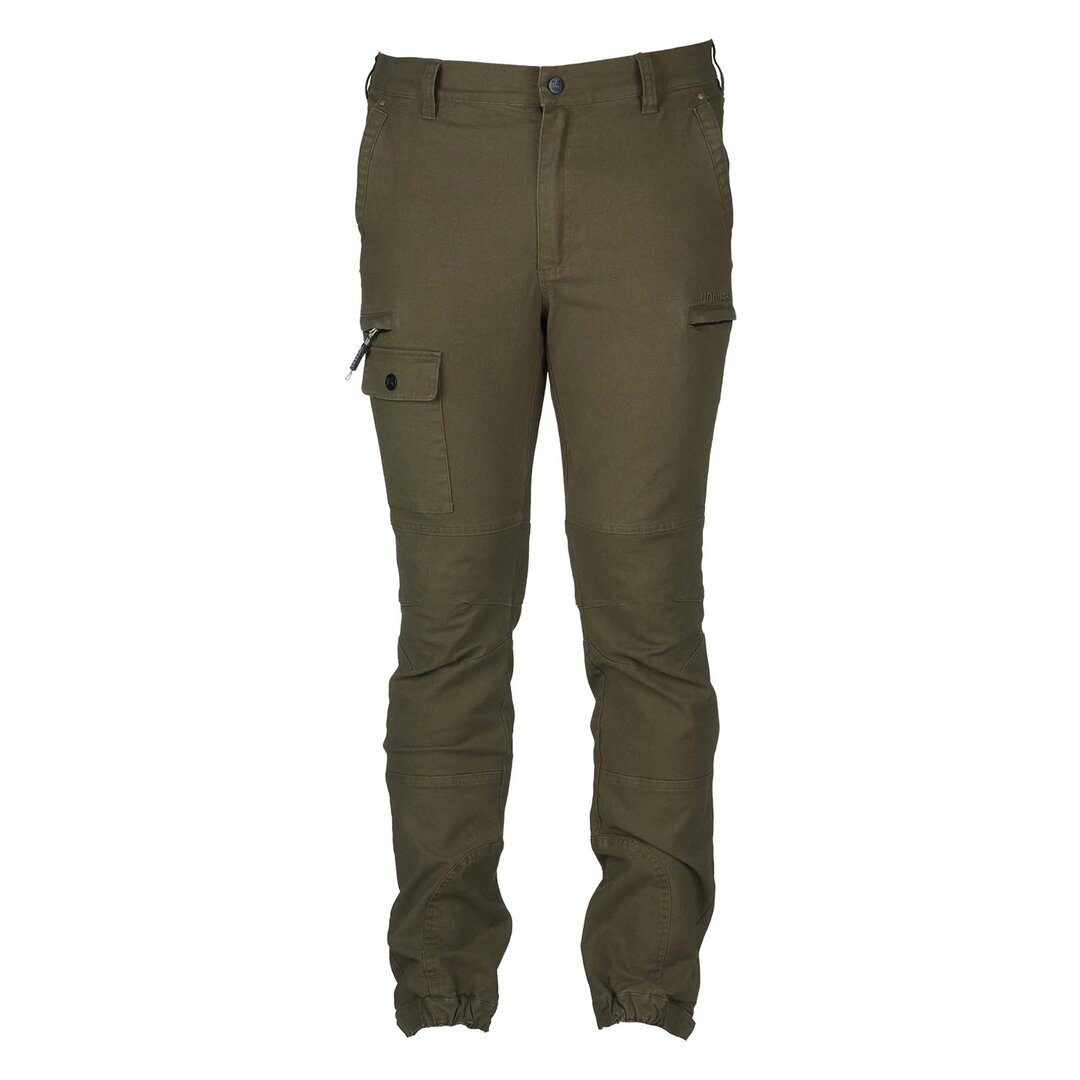 Pantalone da caccia LEGEND, in robusto canvas di cotone elasticizzato slavato. Due tasche frontali, due tasche laterali a scomparsa con zip e una tasca porta cellulare, due tasche posteriori con zip, elastico in vita, fondo gamba con elastico e possibilità di restringimento con velcro . SPEDIZIONE GRATUITA