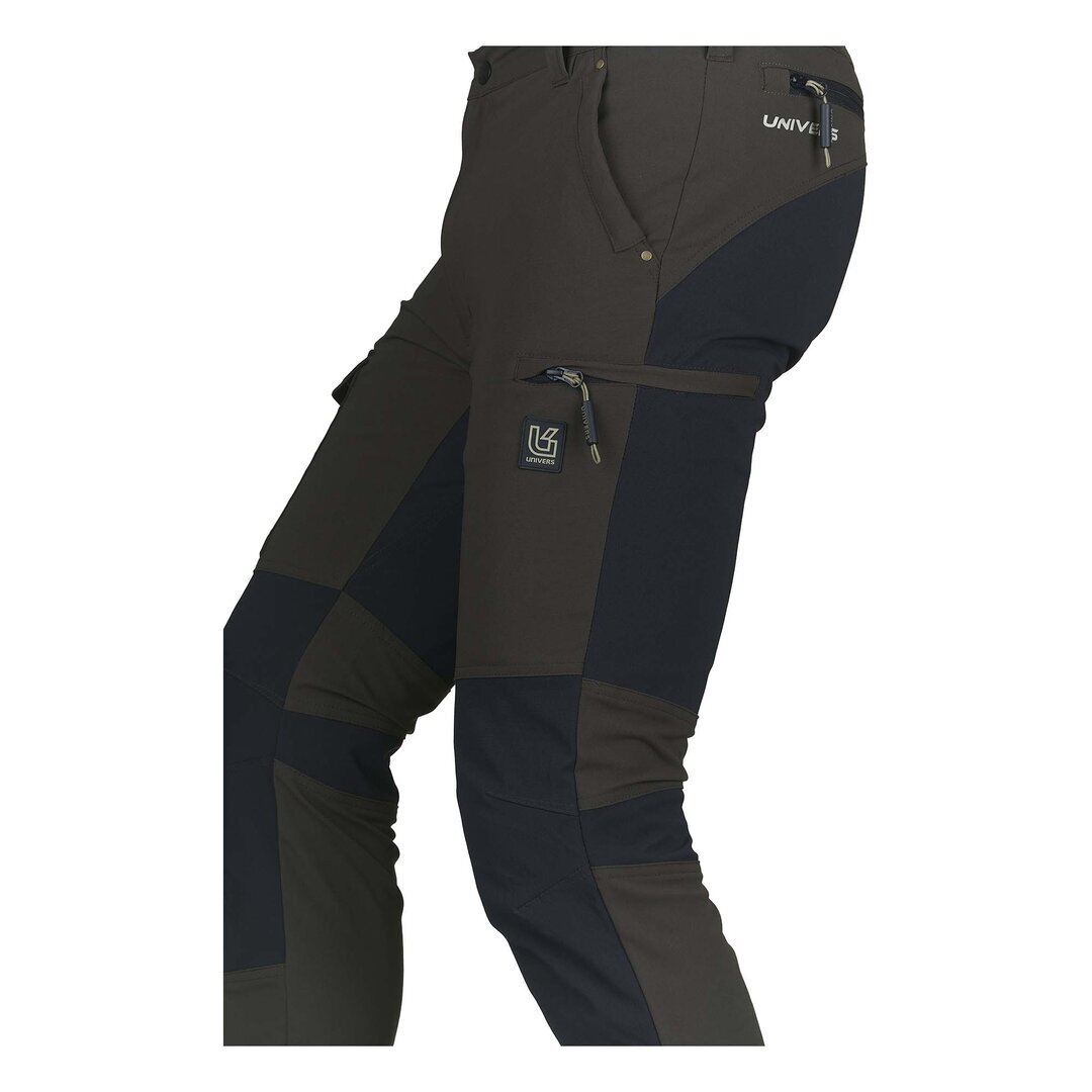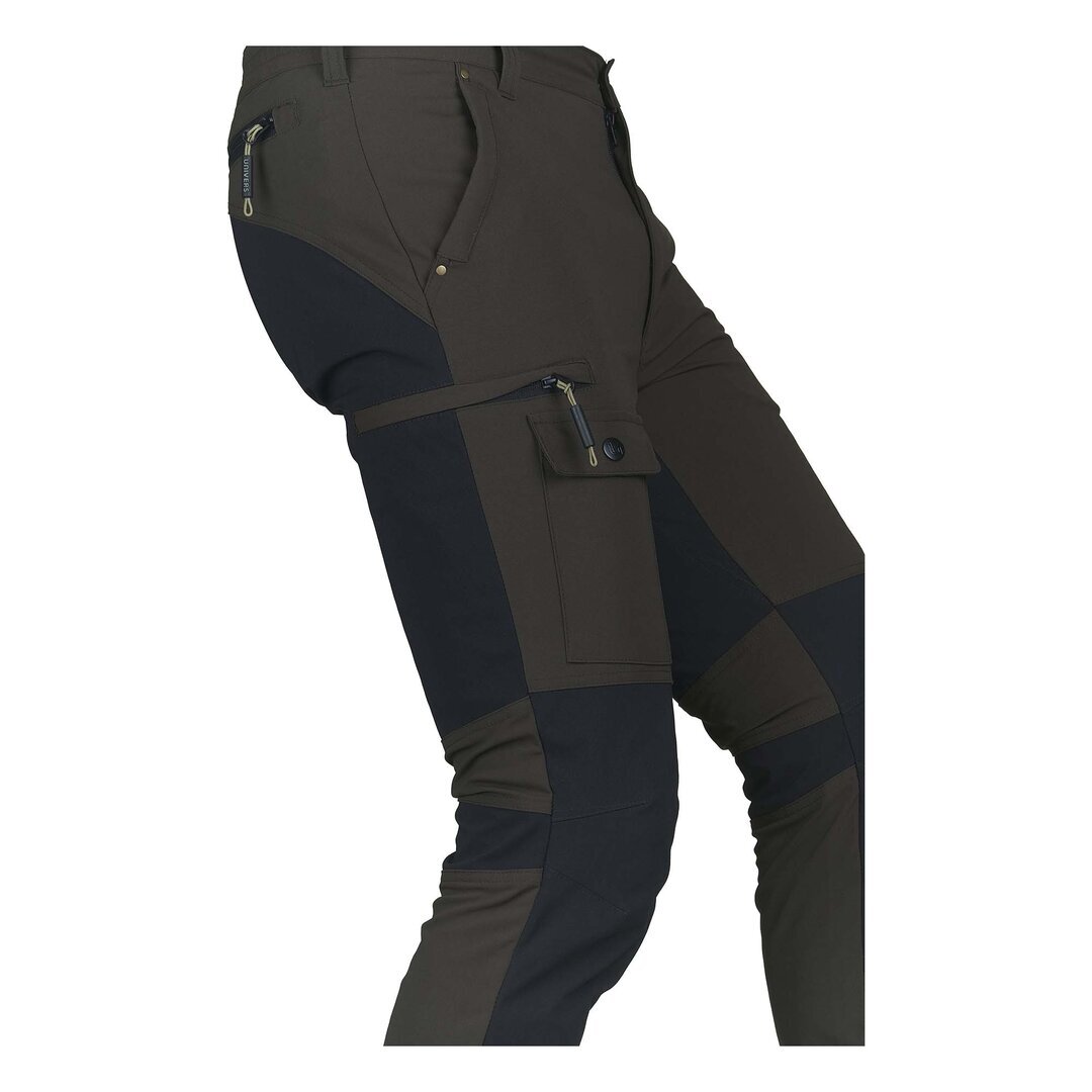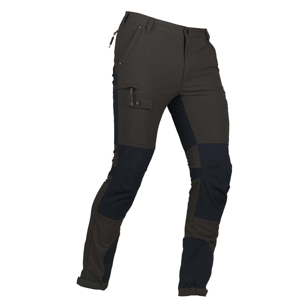 Pantalone da caccia LEGEND, in robusto nylon elasticizzato idrorepellente. Due tasche frontali, due tasche laterali a scomparsa con zip e una tasca porta cellulare, due tasche posteriori con zip, elastico in vita, fondo gamba con elastico e possibilità di restringimento con velcro . SPEDIZIONE GRATUITA